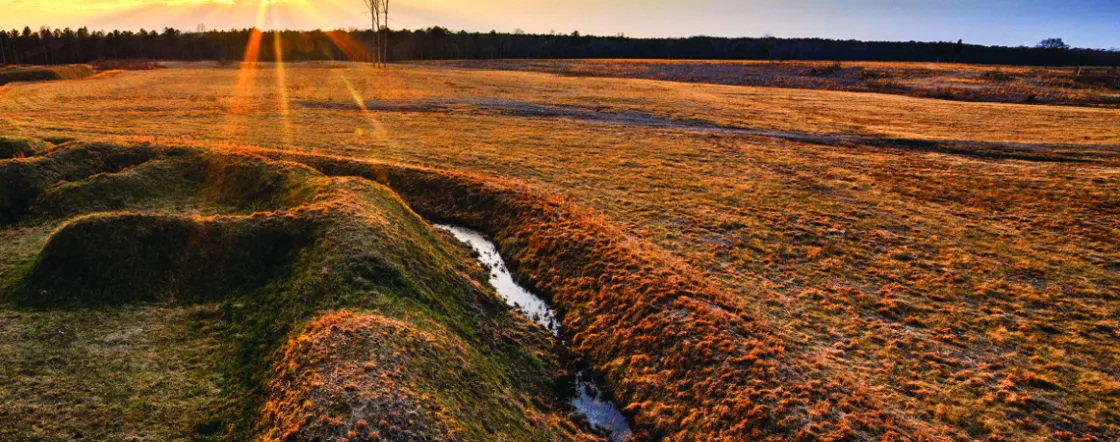 By the early spring of 1865, the main armies in the East were deeply entrenched in miles of earthworks stretched around and between Petersburg and Richmond. Always endeavoring to stretch his enemy and strike at weak points, Union Lt. Gen. U.S. Grant ordered new assaults to try and break the stalemate by threatening the remaining Confederate supply lines — his eighth overall offensive since taking up position before Petersburg. The first engagement occurred on March 29 at Lewis’s Farm, and victorious Union forces pressed their advantage on March 31 at White Oak Road.