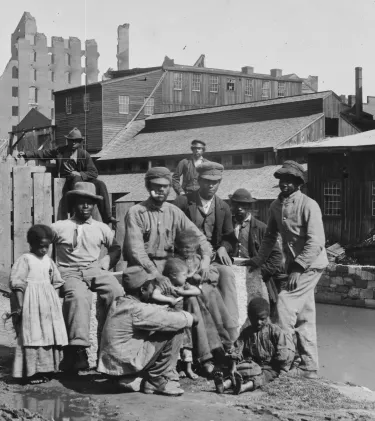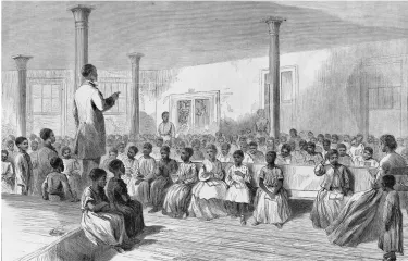 The Emancipation Proclamation took effect on January 1, 1863, granting freedom to all enslaved people within rebelling territories. In January 1865, General William T. Sherman issued Special Field Orders No. 15, reserving confiscated land on the coast of Georgia and South Carolina for the use of freedpeople, each family to be given 40 acres, which was the source for the expression “forty acres and a mule.” The same month, the Thirteenth Amendment was passed by Congress, officially abolishing the institution of slavery in the United States. President Abraham Lincoln had hinted towards granting suffrage to black males. As clean cut as this sounds, the situation for formerly enslaved people on the ground was much more complicated. Their lives had been changed dramatically in a short amount of time, and some of them had nothing but the clothes on their back. While initially celebrating emancipation and the end of the war, many freedpeople were now wondering, “Now what?”