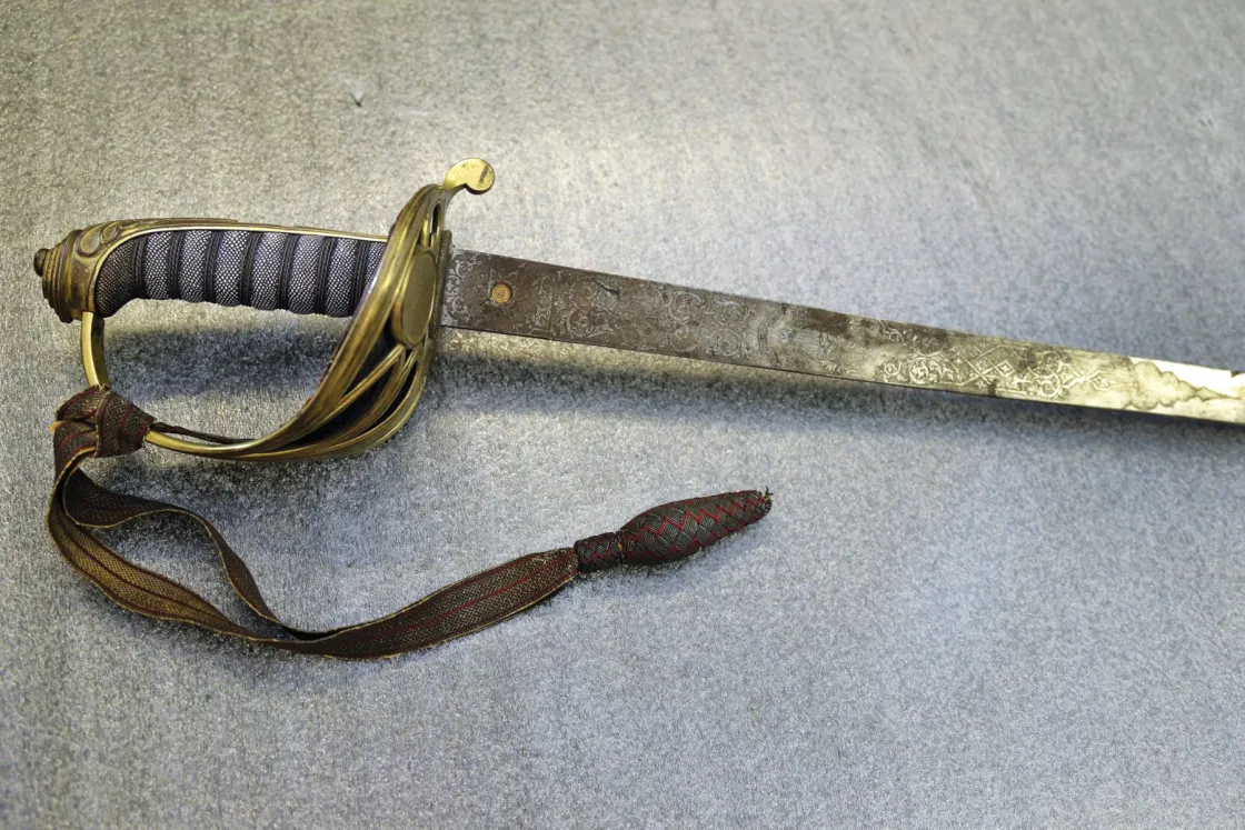 In reality, after Union forces failed to carry Fort Wagner, Confederate defenders looted the bodies of many of their fallen adversaries. Shaw’s sword — an exceptionally fine custom-made English weapon he received as a gift from his uncle only a few weeks earlier — was probably sold to a Southern officer and made its way into North Carolina. In 1865, Brig. Gen. Charles Jackson Paine, commander of the Military District of New Berne and himself a commander of black troops, retrieved the sword and arranged for it to be returned to Shaw’s sister, Susanna Shaw Minturn. Gradually, the sword was forgotten and resigned to dusty attics.
