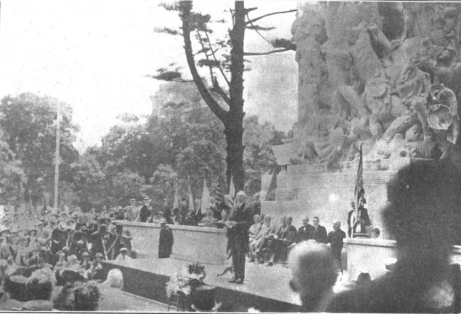 On a cloudy and overcast Friday, June 9, 1922, in Princeton, New Jersey, President Warren G. Harding stood beneath a massive limestone sculpture that he was there to dedicate. Before him a large throng of men sporting fedoras and women in hats reflecting the various styles of the age stood waiting for the President to speak. The sculpture was draped in a large American flag typical of such dedication ceremonies. The date of the dedication had been set to accommodate the President’s schedule. Only ten days earlier on May 31, Memorial Day, Harding had spoken at the dedication of the Lincoln Memorial in Washington, DC. After speaking at Princeton he was to be given an honorary degree by the University later in the afternoon.