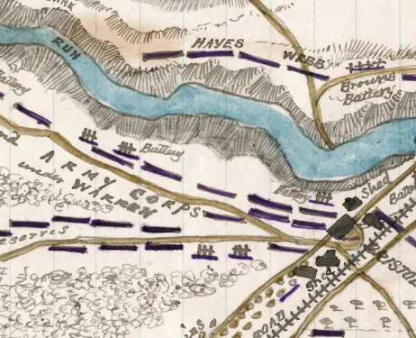 In early October 1863, the Union army withdrew from its central Virginia pursuit of Robert E. Lee's Army of Northern Virginia, 90 days after the Gettysburg campaign. Lee and the Army of the Potomac under Maj. Gen. George G. Meade maintained close contact with each other as Meade moved north towards Centreville. On October 14th, Lieut. Gen. A.P. Hill’s corps stumbled upon two corps of the retreating Union army at Bristoe Station and attacked without proper reconnaissance. Union soldiers of Maj. Gen. Gouverneur K. Warren's Second Corps, posted behind an embankment of the Orange & Alexandria Railroad four miles west of Manassas, ambushed two brigades of Brig. Gen. Henry Heth’s division and captured a battery of artillery. Confederate Brig. Gen. Carnot Posey was mortally wounded in a counterattack. Hill reinforced his line but could make little headway against the determined Yankee defenders. After their victory, the Federals continued the withdrawal eastward to Centreville unmolested. Lee’s offensive sputtered to a premature halt. After minor skirmishing near Manassas and Centreville, the Confederates retired slowly to Rappahannock River destroying the Orange & Alexandria Railroad as they went. At Bristoe Station, Hill lost standing in the eyes of Lee, who angrily ordered him to bury his dead and "say no more about it."