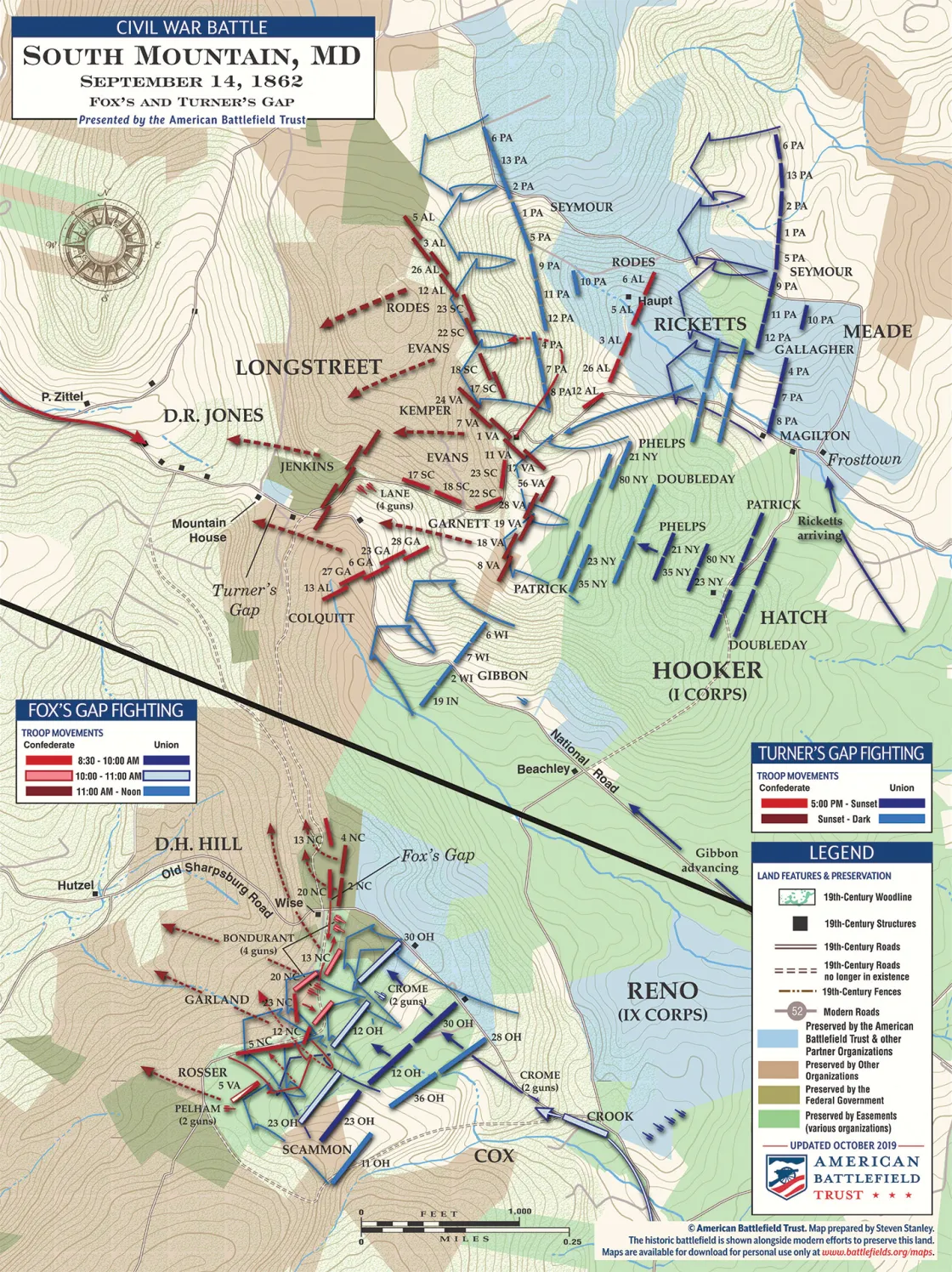American Battlefield Trust’s map of Fox's and Turner's Gap at the Battle of South Mountain on September 14, 1862.
