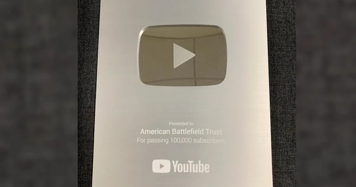 The American Battlefield Trust received a Silver YouTube Play Button in recognition of surpassing 100,000 subscribers on its official YouTube channel. This milestone celebrates the Trust’s ongoing commitment to creating engaging, educational, and accessible history content for audiences around the world. From animated battle maps and expert-led videos to on-site explorations and virtual tours, the Trust’s YouTube channel brings America’s military history to life—preserving the past through digital storytelling for millions of viewers.