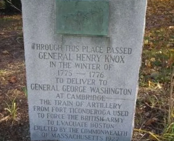 The Henry Knox Trail, also known as the Knox Cannon Trail, is a network of roads and paths that traces the route of Colonel Henry Knox's "noble train...