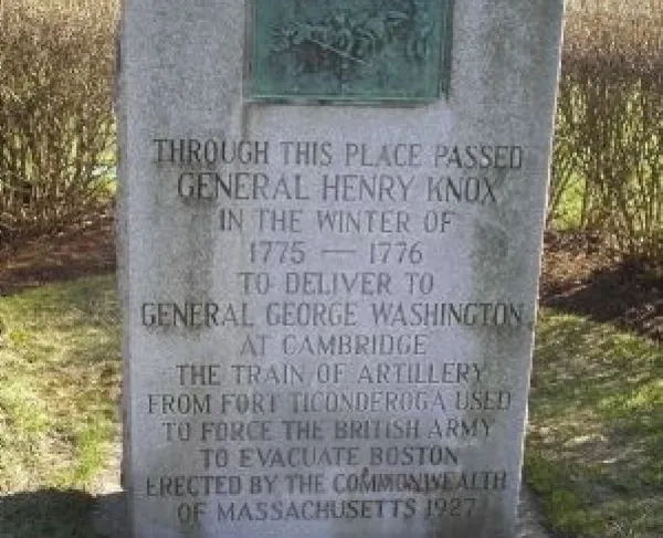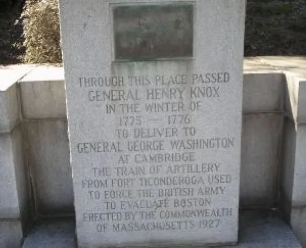 The Henry Knox Trail, also known as the Knox Cannon Trail, is a network of roads and paths that traces the route of Colonel Henry Knox's "noble train...