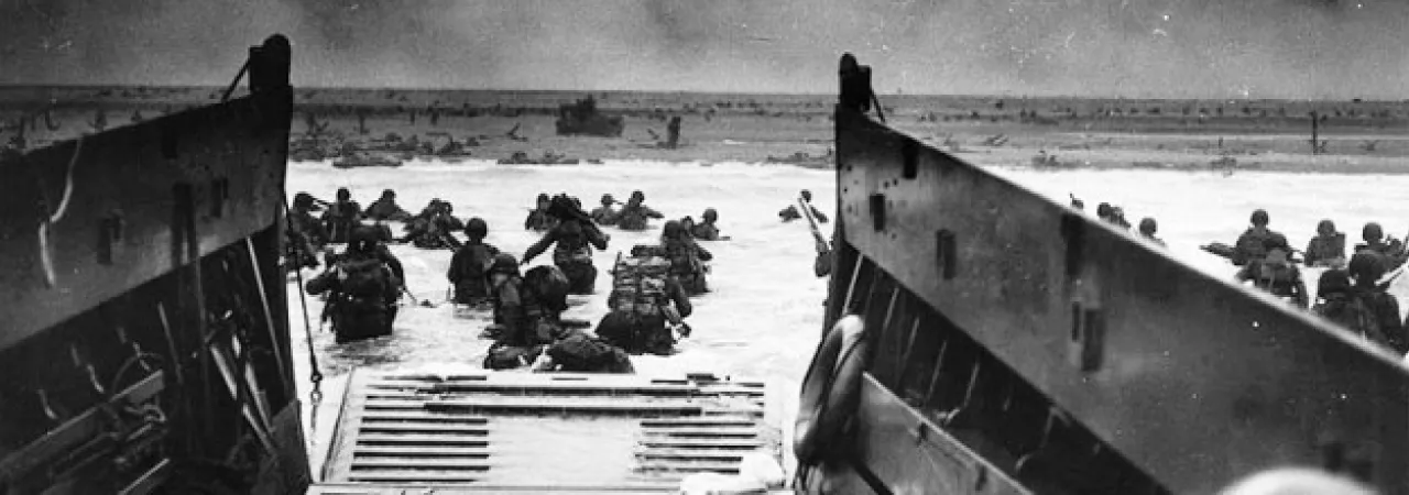 During World War II, the regiment lit the “Torch” in North Africa in 1942 and was part of “Operation Husky,” the Allied invasion of Sicily. On June 6, 1944, the 16th Infantry was one of the regiments ordered to take Omaha Beach during “Operation Overlord,” better known as D-Day. Of the five D-Day landing beaches, Omaha Beach was the deadliest—survivors dubbed it “Bloody Omaha.” Hundreds of the regiment’s young infantrymen were mowed down, but by noon, the 16th had established a beachhead and seized the town of Colleville-sur-Mer.