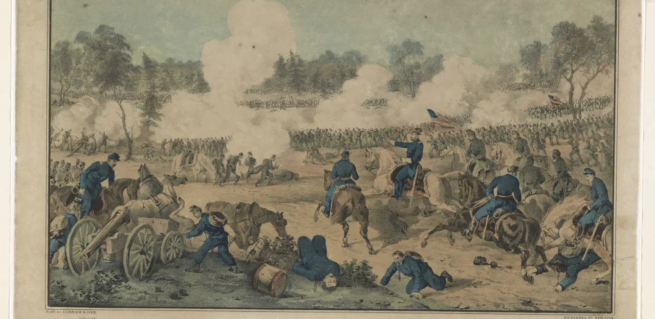 After the war Battery B served at Jefferson Barracks until 1857 when it participated in the Utah Expedition to put down the Mormon rebellion. At the outbreak of the Civil War, the battery traveled east under the command of Captain John Gibbon and in October was attached to what would become the First Division, First Corps. To bring the battery up to full war footing in the absence of sufficient Regular Army recruits, Gibbon selected men from the brigades of the division, particularly from the Iron Brigade that Gibbon would shortly leave to command. The battery would fight alongside the Iron Brigade in most of its battles during the war and men from the unit would help fill Battery B’s rolls for the next several years. Under 1st Lieutenant Campbell, the battery fought at Brawner’s Farm on August 28, 1862, in its first engagement of the war. It was largely responsible for knocking Jubal Early’s brigade out of the fighting, numbers that probably would have tipped the balance in the close-fought engagement. Battery B fought at Second Manassas the next two days and helped hold Dogan House in the crisis on August 30th.