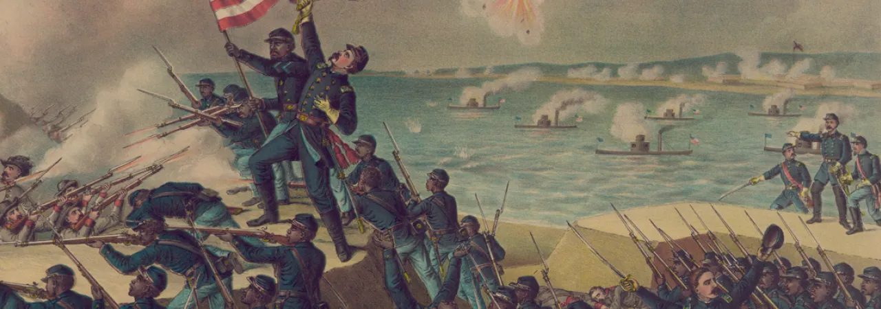 After the war, the 54th's actions were memorialized by Augustus Saint-Gauden's bronze monument located just outside of the Massachusetts State House in the Boston Commons. The monument was created under the supervision of Robert Shaw’s surviving family, and the monument features the famed colonel with his soldiers. On May 23, 1900, Sergeant William Carney was awarded the Medal of Honor, being the first African American to receive the medal for his actions during the Battle of Fort Wagner. (Robert Blake was the first African American to physically receive the Medal of Honor as his was issued in 1864, Carney is the first African American to perform the action that earned him the Medal of Honor.) Carney was severely wounded while serving as color bearer after the previous color bearer fell in battle. He explained to the veterans of the 54th, “Boys, I did but my duty; the dear old flag never touched the ground.”