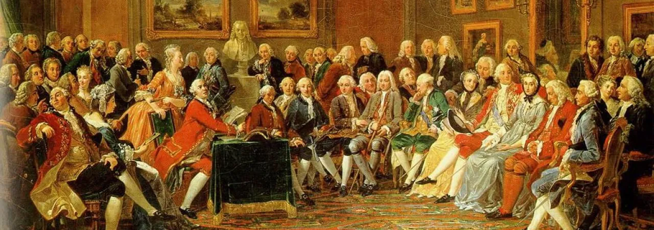 Reading of Voltaire's tragedy of the Orphan of China in the salon of Marie Thérèse Rodet Geoffrin in 1755, by Anicet Charles Gabriel Lemonnier, c. 1812.