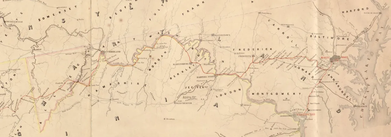 The Baltimore and Ohio (B&O) Railroad was the first railroad chartered in the United States and was the backbone for transportation in the early 1800s. The line’s construction began on July 4th, 1828. From 1828 to 1861, the B&O had expanded into thirteen states. The B&O dipped into portions of Northern Virginia, such as Winchester and Strasburg, Virginia, with Harper’s Ferry serving as the main junction to the Shenandoah Valley.