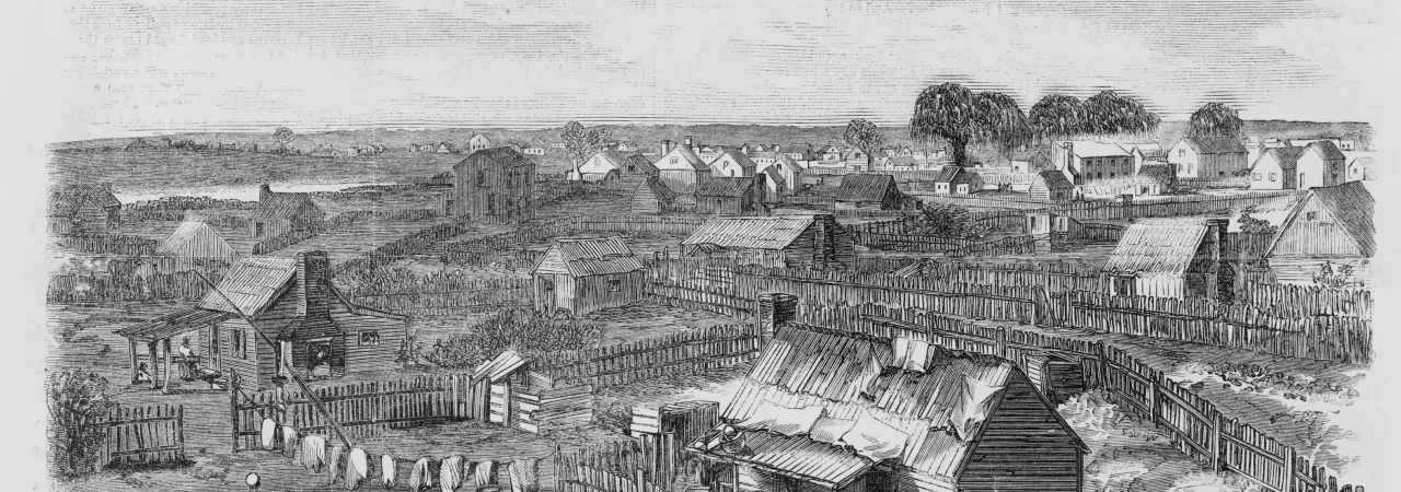The Emancipation Proclamation took effect on January 1, 1863, granting freedom to all enslaved people within rebelling territories. In January 1865, General William T. Sherman issued Special Field Orders No. 15, reserving confiscated land on the coast of Georgia and South Carolina for the use of freedpeople, each family to be given 40 acres, which was the source for the expression “forty acres and a mule.” The same month, the Thirteenth Amendment was passed by Congress, officially abolishing the institution of slavery in the United States. President Abraham Lincoln had hinted towards granting suffrage to black males. As clean cut as this sounds, the situation for formerly enslaved people on the ground was much more complicated. Their lives had been changed dramatically in a short amount of time, and some of them had nothing but the clothes on their back. While initially celebrating emancipation and the end of the war, many freedpeople were now wondering, “Now what?”