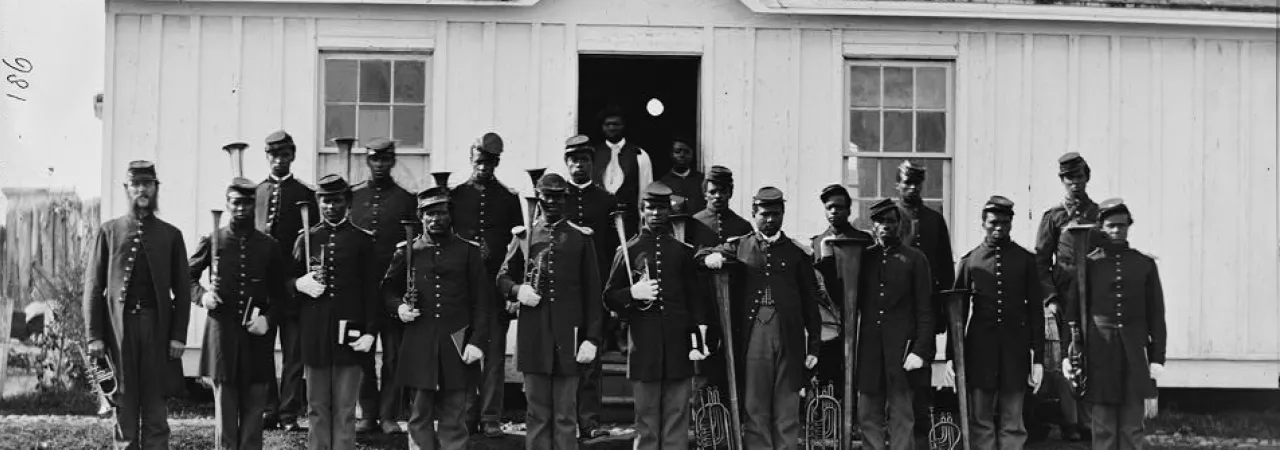 With all of these different musical genres, and many more in the years leading up to and during the Civil War, what role did they play in the everyday lives of civilians and those in the armies? People back then listened to and used music in much the same way as we do today. They attended concerts or minstrels shows as a source of entertainment. They sang hymns and spirituals at church services and religious events. The military, however, used music differently during this time period. Military bands and the music they played inspired patriotism and fighting spirit. It was played on the march before and after battle. Military bands also played music that had very special and important roles, instructing soldiers when to eat, go to bed, and even charge into battle. Although brass bands and their style of music existed before the Civil War and had been imported from Europe into the new world over a century before, American military brass bands and music rose to a higher prominence than even during the American Revolution as a direct result of the Civil War itself. Indeed, both the Union and Confederate armies in all theaters of the war utilized these musical groups. And even though American military bands still exist and are used to inspire patriotism, they are no longer used on the battlefield. Their story, then, began with the beginning of the war and the need for both governments to raise massive armies.