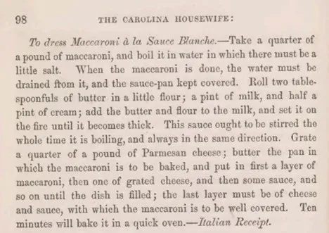 Macaroni a la Sauce Blanche from The Carolina Housewife (page 98)