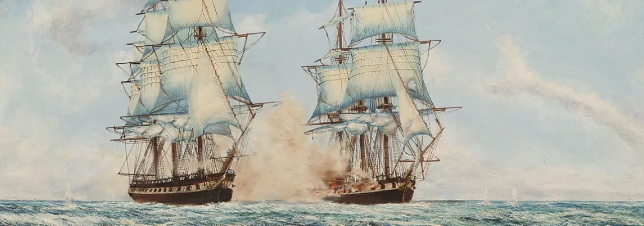 With the new frigate Guerriere (named after Constitution’s famous prize) sailing as flagship, Decatur’s squadron included Constellation, Macedonian and a number of smaller vessels. On June 17, off Cape de Gata, Constellation’s lookout spotted the Algerian frigate Mashuda. Three of the American squadron drew within range and engaged, overwhelming the Mashuda and forcing its surrender. On June 30, Decatur signed a treaty restoring peace and, after a few port visits in the Mediterranean, returned to New York by early November.