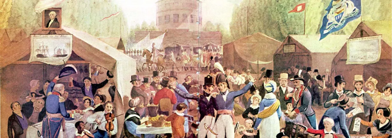 The ending of the War of 1812 marked a brief period in United States History referred to as the “Era of Good Feelings”—a few years of prosperity, lessening of political division, and interest in projects for the national good. This proverbial calm before the storm preceded the Jacksonian Era which was characterized by the rise of new and powerful political parties, sectional interests, and increasing tension over slavery. These two eras set the stage for the more tumultuous decades of the 1840s and 1850s which pushed the country closer to the brink of civil war.