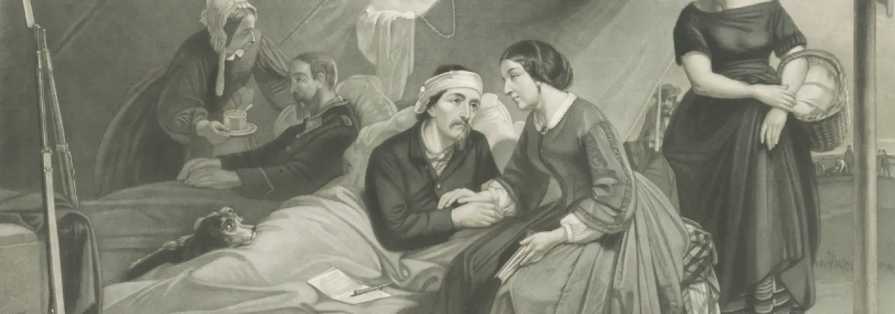 On September 6, 1862, Harper’s Weekly published a drawing titled “The Influence of Women”. In the engraving, women fulfill many important roles for the war effort, from sewing shirts and knitting socks as part of the sanitary commission, to washing clothing for soldiers as camp aides, as well as acting as “sisters of charity” ministering to soldiers in the field hospitals and helping wounded soldiers write letters back home. Many of these women depict efforts to heal and care for soldiers. The Harper’s Weekly picture shows the culmination of women’s efforts to take a more active and public role in the medical field serving as nurses treating wounded soldiers during the Civil War.