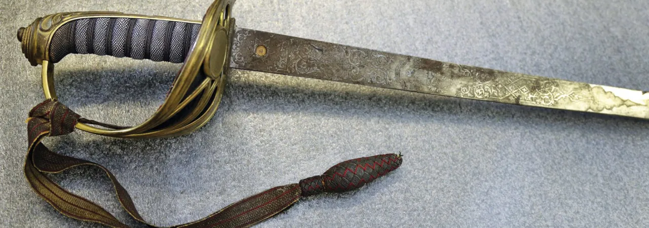 In reality, after Union forces failed to carry Fort Wagner, Confederate defenders looted the bodies of many of their fallen adversaries. Shaw’s sword — an exceptionally fine custom-made English weapon he received as a gift from his uncle only a few weeks earlier — was probably sold to a Southern officer and made its way into North Carolina. In 1865, Brig. Gen. Charles Jackson Paine, commander of the Military District of New Berne and himself a commander of black troops, retrieved the sword and arranged for it to be returned to Shaw’s sister, Susanna Shaw Minturn. Gradually, the sword was forgotten and resigned to dusty attics.