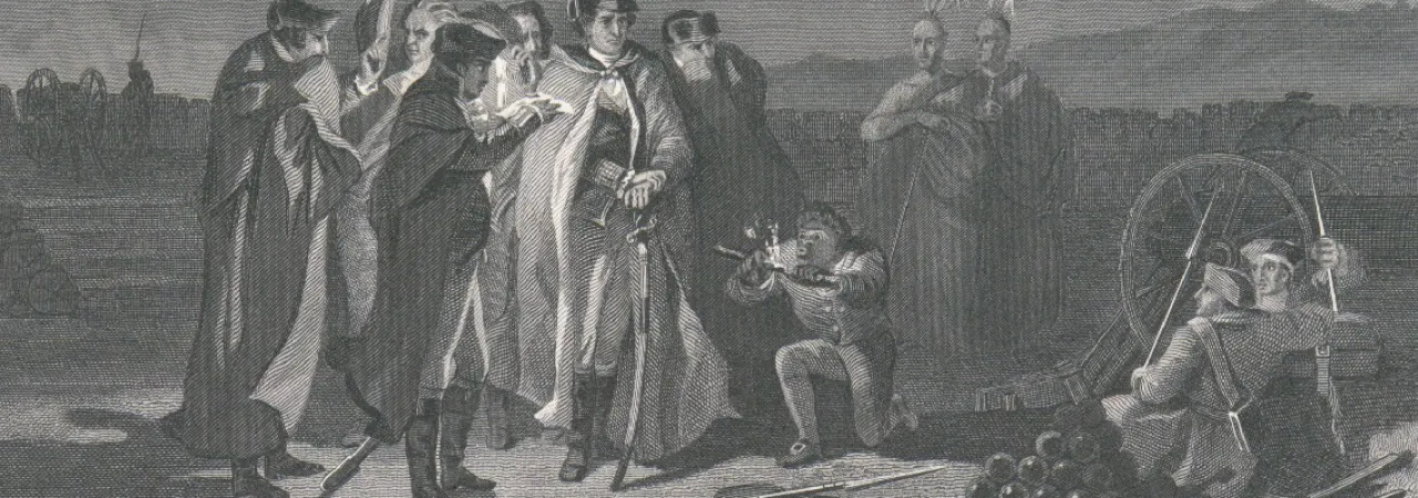 The French and British both asserted their respective claims at roughly the same time. George Washington, now a Lieutenant Colonel in the Virginia militia, led a small force toward the Forks of the Ohio River in modern Pittsburgh, but the French beat him to the prize. He withdrew to a frontier glade called the Great Meadows, ambushed a French force at a place since known as Jumonville Glen, and then built a poorly designed fort that he dubbed Fort Necessity. The French and their Indian allies attacked and compelled Washington to surrender. The terms, written in French, stated that Washington’s attack at Jumonville Glen had resulted in the assassination of the French commander, causing an international scandal. Washington later blamed his translator for not properly explaining these elements of his surrender.
