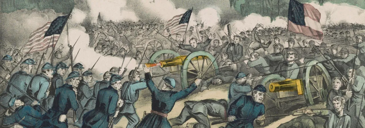 Hand-colored lithograph by Currier & Ives entitled "The battle of Gettysburg, Pa. July 3d. 1863."