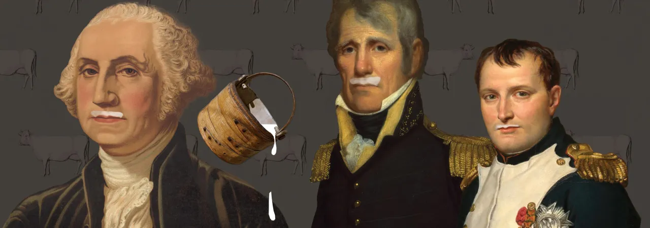 Betcha didn’t know that June is National Dairy Month. Yep, that’s a thing. The white stuff had a real moment in the 1990s with the Got Milk? advertising campaign. It seemed like every A-list celeb—think Jennifer Aniston and Michael Jordan—sported a milk mustache in magazine pages and on billboards across the country. Well, if public service announcements like that had existed in the late 18th century, George Washington probably would have signed up. He was a milk proponent, ensuring that, on November 4, 1775, the Continental Congress included a pint of the stuff in the Continental Army soldiers’ daily rations. Guess he thought it was a “moo-rale” booster.