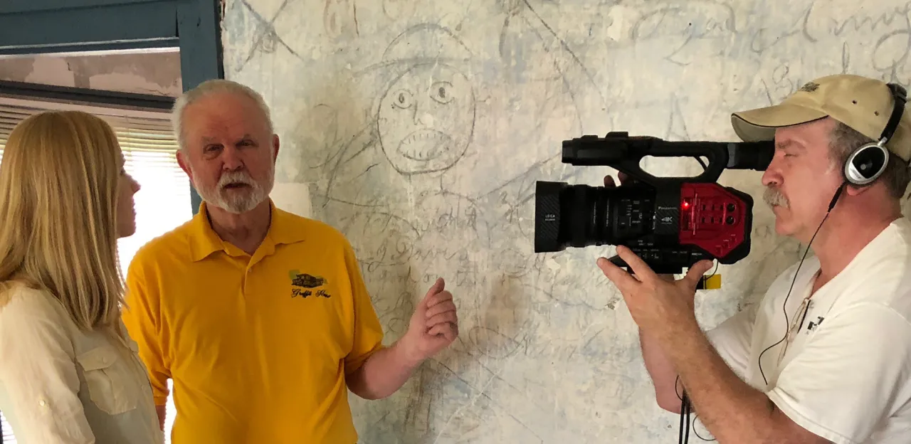 DN: In each place that we visit and film for “Travels with Darley,” we’re working to capture the authentic essence of the place. You can’t do that in most places, but especially Culpeper, without delving into the history. Brandy Station was important to include. We’re rode up Bufords Knoll, a strategic command point on the day of the battle. I especially enjoyed visiting the Graffiti House with Docent Bob Luddy. We filmed a 360 video inside. It’s one of the most interesting historical sites we’ve visited and been able to capture in 360. The walls in the three upstairs rooms, the upstairs hallway and downstairs bathroom feature everything from signatures to notations to drawings of horses and birds to female visitors to the camps. You have to visit in person to really take in the diversity of the Graffiti House, but capturing it in 360 was also a great way to share it with people around the world and help them learn about it.