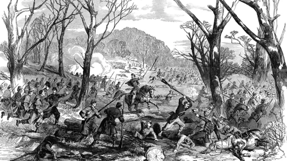 Zollicoffer’s brigade stretched out into gray and butternut lines, slowed by dense trees and morning fog, and then came forward. The deadly seriousness of the attack was now apparent.