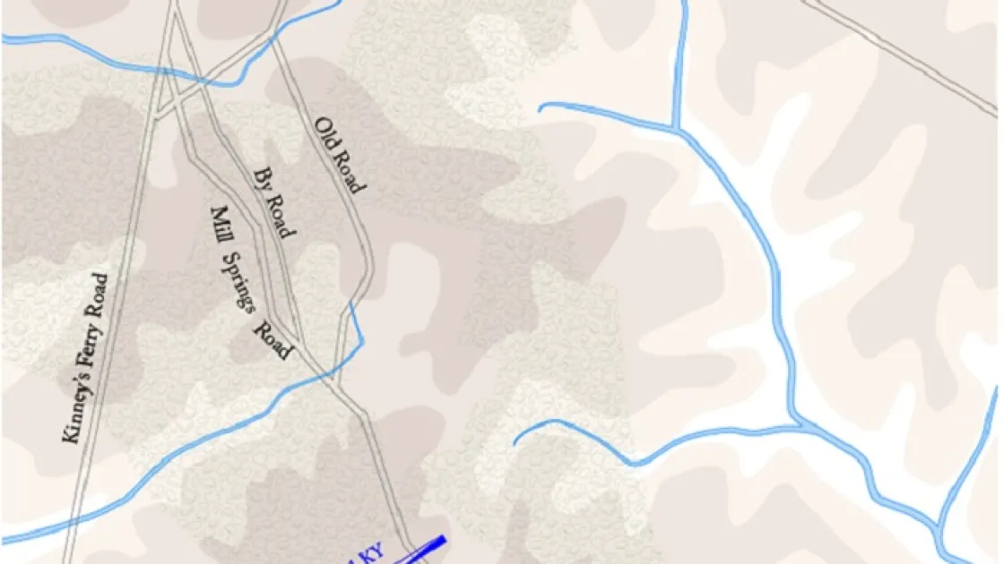 Thomas wanted to unite his forces before beginning an offensive. He led his men through heavy rain out of Lebanon, arriving at a hamlet known as Logan’s Crossroads, near Somerset, on January 17. That night, Col. Samuel Carter’s brigade left Somerset and moved towards Logan’s Crossroads, wading through freezing-cold Fishing Creek on the way and not joining Thomas until nearly five the next morning. Another infantry brigade and some cannons stayed behind in Somerset. If the rains kept up, the creek could soon rise so high as to prevent a crossing.