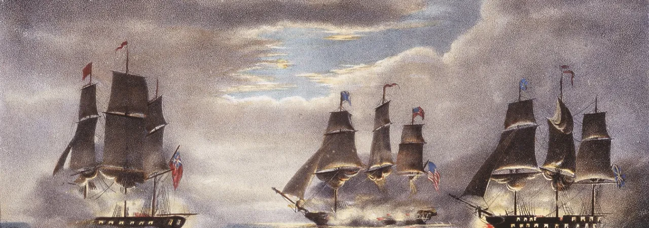 The USS Constitution followed up this victory on the high seas before the end of that year with another successful engagement, this time against the HMS Java. Under the command of Captain William Bainbridge, the ship sailed south from its North American port. After realizing the initial situation in a neutral port on the Brazilian coast was best left to another United States ship guarding the entrance, the USS Constitution sailed off in search of other enemy ships or prizes in the south Atlantic Ocean. Near the end of 1812, the American ship found the British ship HMS Java on December 29. Although the USS Constitution received a brutal broadside to begin the battle that shredded its rigging, the American ship returned the broadside with multiple ones of her own. Much like the sea battle with the HMS Guerriere, the USS Constitution closed in on her adversary. With a devastating salvo the HMS Java’s foremast crashed down two decks below. The USS Constitution suffered damages as well, specifically to her helm, and suffered casualties among personnel, including Capt. Bainbridge. However, the Americans were able to pull away from the enemy. After quickly making emergency repairs the USS Constitution returned within the hour to continue the naval engagement. The British ship was in no shape to continue the fight and struck her colors. The USS Constitution returned to Boston on February 15, 1813, to another warm reception by the American populace.