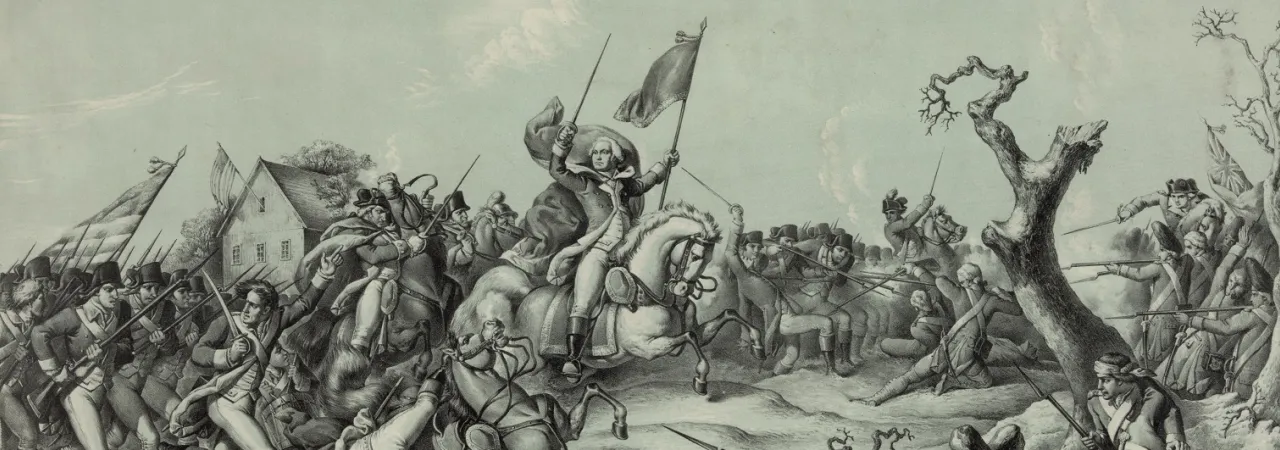 Prior to the January 3, 1777 Battle of Princeton, in addition to providing valuable reconnaissance to General Washington, twenty-two Troopers routed a detachment of Lord Cornwallis’s dragoons from the roads leading to Princeton, allowing the Army to march on the town. During the battle itself, the Troopers fought alongside General Washington in a counterattack against British forces on the property known today at the Washington’s Charge Site, routing three British regiments prior to the Army’s withdrawal to Morristown. The Troop’s rear-guard action saved the Army’s artillery train that day. The Troop later served as detachments at Valley Forge throughout the long winter months, ultimately earning the distinction of being the first unit to reenter the city of Philadelphia (under the command of General Benedict Arnold) following the British retreat. For their distinguished served during the war, the Troop won the honor of receiving the captured British standards following the surrender at Yorktown on October 19, 1781, which the Troop later paraded through the city and presented to Congress.