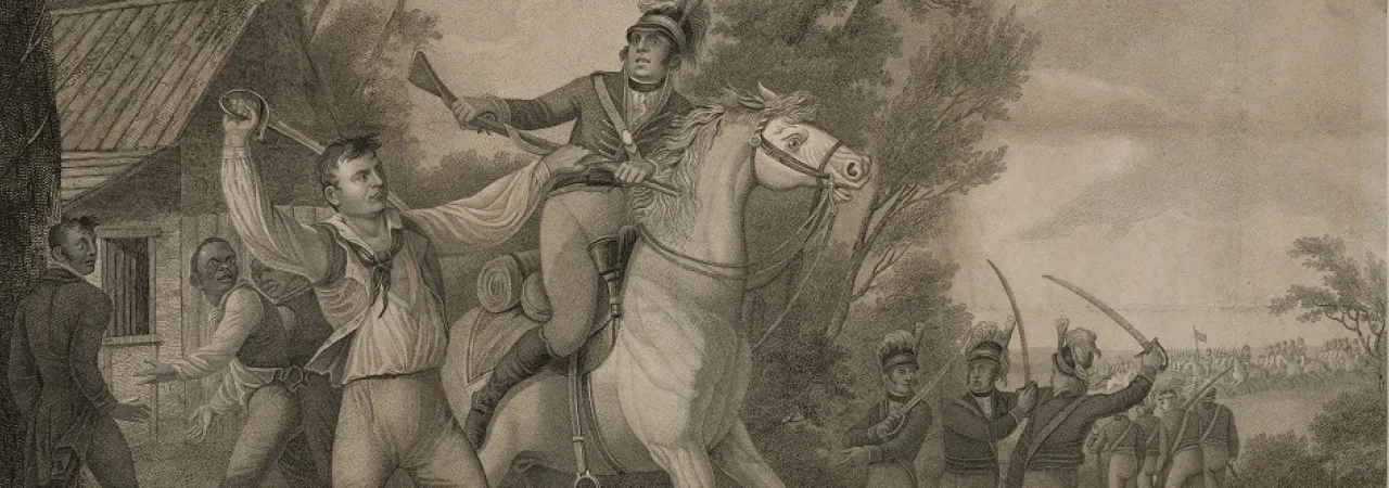 Francisco agreed that on his homebound journey, he would keep tabs on the troop movements of the infamous Banastre Tarleton who was wreaking havoc on American forces in Virginia with his special cavalry unit. According to his own testimony he managed to escape the clutches of Tarleton and his men not only by defeating them but getting away on one of their horses. The story goes that during the attempt by Tarleton’s men to capture the “Virginia Giant,” where they had him pinned down in a tavern, he claimed to have killed or mortally wounded at least three of eleven of Tarleton’s men. During the standoff, he came out of the tavern to face nine captors. Adding insult to injury, they ordered him to hand over the buckles of his shoes, which were made of silver. If they wanted them, Francisco said they would have to take them themselves. As they began to steal his buckles, Francisco subdued one soldier grabbing, his sword and striking him on the head. A fierce brawl broke out. In the fracas, Francisco nearly severed off the hand of the soldier whose sword he had managed to secure. Pistol shots were discharged at the hulking American, one bullet glancing off his side. Another Redcoat aimed at him with his musket only to have it misfire. In that instant, the "Virginia Giant," seized the musket from the soldier who shot at him, clutched his opponent, throwing him off his horse, and made good his getaway. Later that year, after his recovery, he was able to join Washington’s Army near Yorktown, Virginia, and witnessed Cornwallis’ surrender in October 1781.