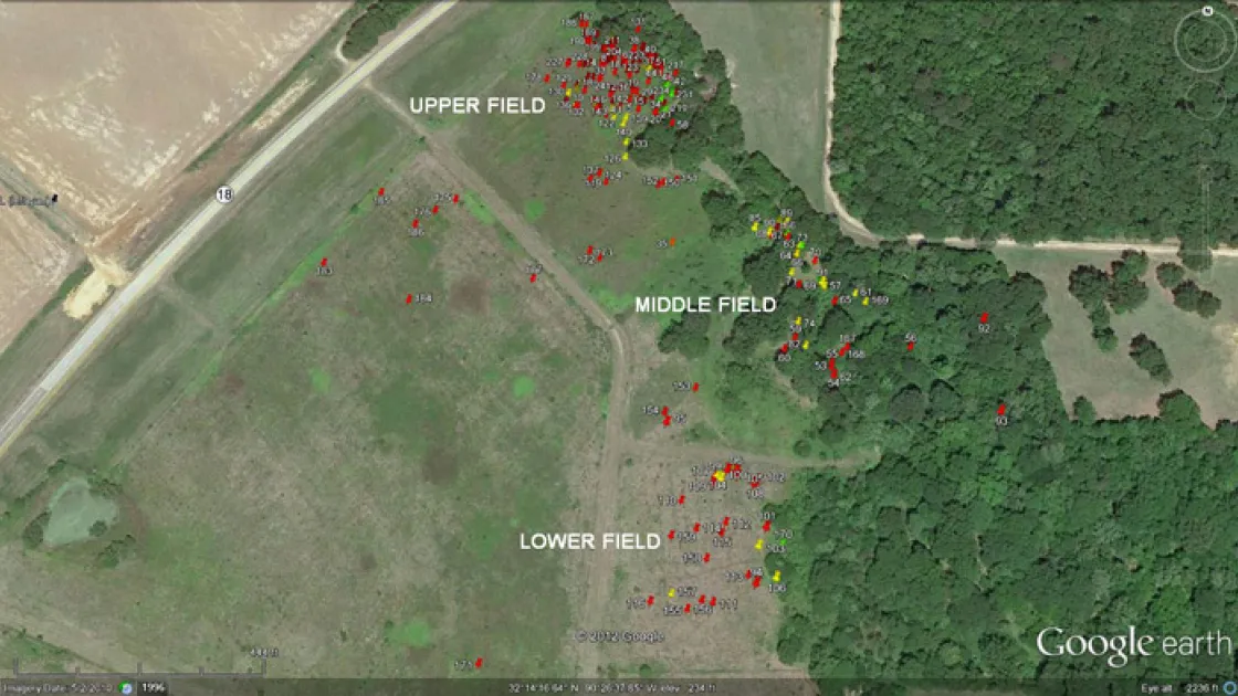 The following year the Gaddis Farms of Bolton, Mississippi, always good stewards of the land, worked with FOR to clear the jungle of grass and brush off the recently-purchased property, and by the spring of 2011 the former fields of sedge grass and scrub had been transformed into rolling, verdant fields of soybeans. After the bean crop was harvested that fall, the cleared fields presented a "battlefield detectives" opportunity.