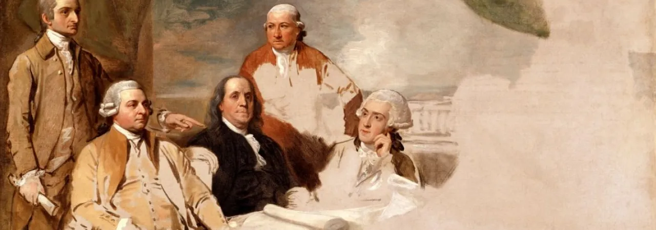 The main American delegates that worked for these negotiations were Benjamin Franklin, John Jay, and John Adams. Thomas Jefferson was nominated to work on these peace treaties, but was unable to leave the United States because he was serving as Governor of Virginia. Henry Laurens was key in negotiating with the British during the later stages of the peace talks but was absent during the beginning because he was imprisoned in the Tower of London from 1780 to 1781. A year prior, he had been nominated as foreign minister to the Netherlands and had successfully negotiated their financial and military support for the war. However, on his return trip to the Netherlands after the negotiations, he was intercepted by a British ship and arrested for conspiring with the Dutch. He was the only American to be held in the Tower of London during the war. William Temple Franklin, Benjamin Franklin’s grandson, was the American delegation’s secretary during the peace talks. He is depicted in Benjamin West’s 1783 unfinished portrayal of the American and British delegates for the peace talks. After months of discussions between these men and the British delegates, the Treaty of Paris was drafted on November 30, 1782. The treaty was formally signed by the United States on Great Britain on September 3, 1783. With this signing, the American Revolutionary War officially came to an end.