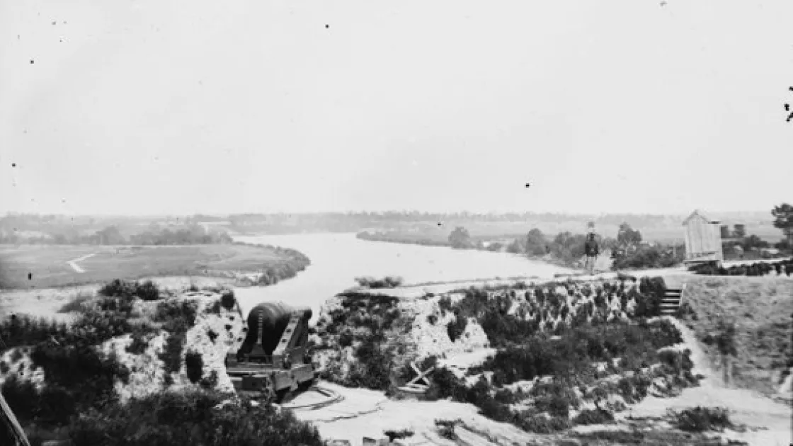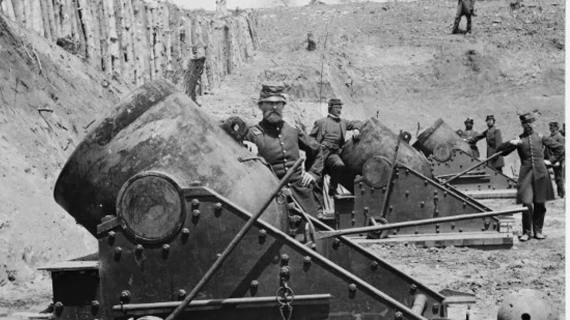 After successfully landing his forces, McClellan became convinced of a sizeable Confederate force at Yorktown. He stopped for nearly a month, preparing for a siege. Ultimately, Confederates evacuated before McClellan could assault, leaving these mortars pointed across the great battlefield that never was.