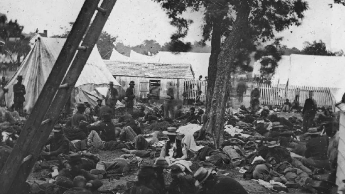 The day after Seven Pines, Gen. Robert E. Lee was given command of the Confederate army and launched a weeklong series of attacks known as the Seven days' Battles -- one of which raged here, at Savage's Station. Most of the wounded men in this image were captured the next day.