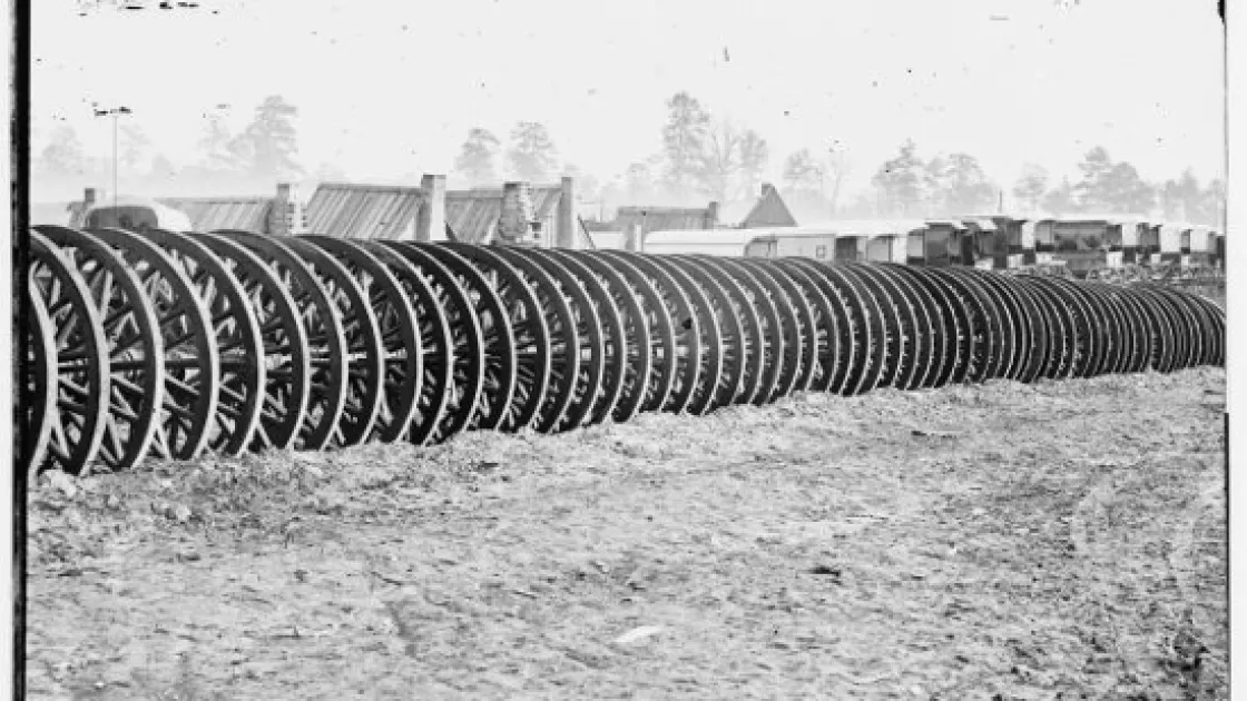 An army in the field couldn't wait for supplies to arrive. Stockpiles, like these wagon wheels at City Point, waited at key locations.