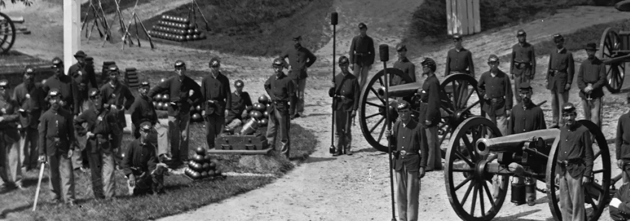Such controversy continued for two campaigning years. The engineers built and constantly improved Washington’s fortifications using both white and black, soldier and civilian labor. Ordnance men constantly shifted cannon while technically proficient “heavy artillery” units specifically recruited for Washington’s defenses learned their trade of trajectory and distance computation, surveyed the countryside presided over by the frowning heavy cannon, and fraternized with local civilians. It was a pleasant existence for the “spit and polish” white-gloved garrisons, broken only by periodic scares from Col. John S. Mosby’s partisans or Confederate Gen. Robert E. Lee’s northward expeditions.