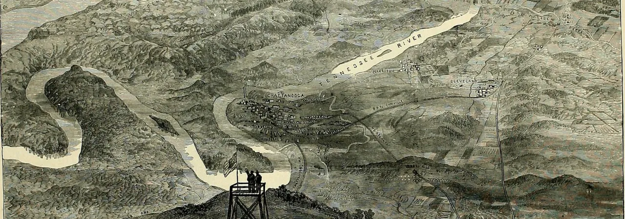 Though defeated at Chickamauga, Rosecrans held Chattanooga. Wary of attacking the strong entrenchments put up by the Union army, the Confederates attempted to starve Rosecrans’ men into submission. Only one route – a treacherous road over Walden’s Ridge – remained open and on it came all the supplies sustaining the army. Wilder’s men performed scouting duty west of town and kept the supply line open.
