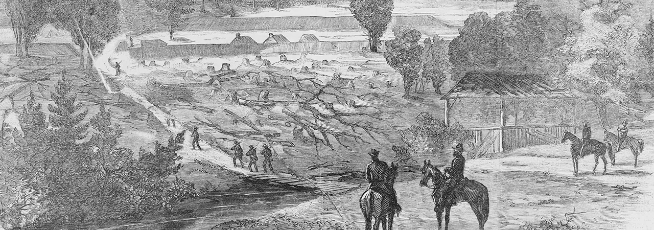By late March 1865, the battle lines surrounding Petersburg had extended west into Dinwiddie County. Lieut. Gen. Ulysses S. Grant knew his larger army could eventually stretch Gen. Robert E. Lee's Confederates to the breaking point. On March 30th, Lee shifted reinforcements to meet a Federal movement to turn his right flank along the line, placing Maj. Gen. W.H. Fitzhugh Lee’s cavalry divisions at Five Forks and transferring Maj. Gen. George Pickett’s division from the Bermuda Hundred front to the extreme right. Union Maj. Gen. Gouverneur Warren pushed the Fifth Corps forward and entrenched a line to cover the Boydton Plank Road from its intersection with Dabney Mill Road south to Gravelly Run. Union Maj. Gen. Romeyn Ayres’s division advanced northwest toward White Oak Road. On March 31st, in combination with Maj. Gen. Philip Sheridan’s cavalry thrust via Dinwiddie Court House, Warren directed his corps against the Confederate entrenchments along White Oak Road, hoping to cut Lee’s communications with Pickett at Five Forks. The Union advance was stalled by a crushing counterattack directed by Maj. Gen. Bushrod Johnson, but Warren’s position stabilized and his soldiers closed on the road by day’s end. This fighting set up the Confederate defeat at Five Forks on April 1st.
