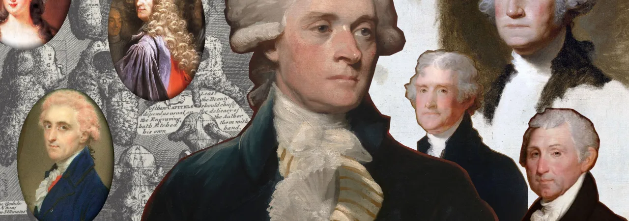 In popular culture, many gentlemen of the 18th century are shown wearing curly white wigs as a part of their everyday look. Gilbert Stuart, the famous portraitist who painted the Founding Fathers, depicted five of the first six Presidents with pure white hair. Modern viewers often assume that these are wigs, mostly due to the proliferation of wig-wearing in movies and television. However, by the time of the American Revolution, wigs were out, replaced by a trend for powdering one’s natural hair. While it’s true that wigs were a major status symbol early in the second half of the 18th century, by 1800 short, natural hair was all the rage. Politics, cleanliness, ailments, and cost were all factors in the rise and fall of wigs.