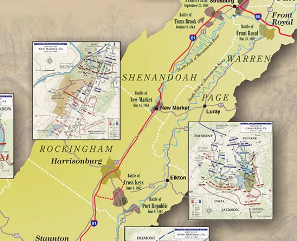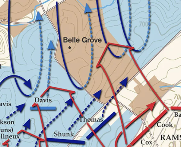 American Battlefield Trust's map of the Battle of Cedar Creek on October 19, 1864 from 4:00PM to 5:30PM