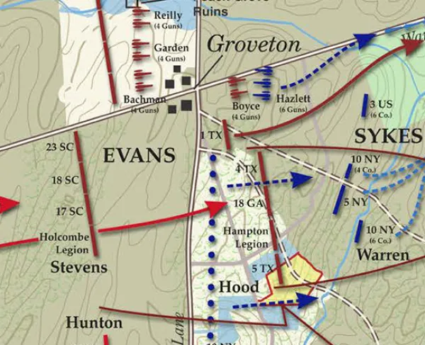 On August 30, 1862, Union commander John Pope receives conflicting intelligence and weighs his options. Mistakenly convinced that the Confederates are retreating, the Union commander orders a pursuit near midday, but the advance quickly ends when skirmishers encounter Jackson’s forces still ensconced behind the unfinished railroad. Pope, still undeterred, shifts to a major assault on Jackson’s line. Porter’s corps and Brig. Gen. John Hatch’s division attack Jackson’s right at the “Deep Cut,” an excavated section of the railroad grade. However, with ample artillery support, the Confederate defenders repulse the attack.