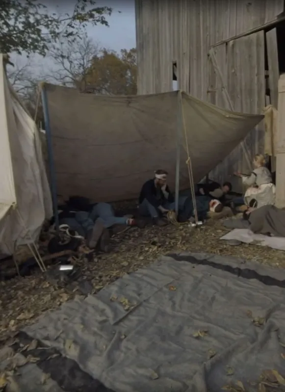 To employ this still-new technology, we partnered with Wide Awake Films from Kanas City and Robert Cloutier (for additional 360 animation—in this case flying cannonballs) to produce four short films that would give an idea of what "regular" experiences might be for Civil War soldiers and civilians. Wide Awake used professional actors and created the sets (including the trenches) on a Kansas City-area farm.