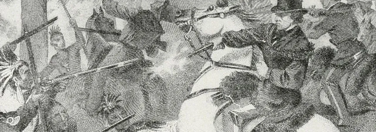 Nevertheless, the battle continued as the British withdrawal left Tecumseh and his warriors alone to face the Americans. After seeing the British retreat, Tecumseh joined his warriors in a swamp on the flank of the American forces to make a final stand against General Harrison’s army. American cavalry charged Tecumseh’s position to contain the Native American threat while the rest of the army dealt with the surrendering British and elements of the British army still fighting. But the cavalry charge was halted by a volley of musket fire along with the muddy swamp that bogged down the horses. After that, however, elements of the main American force began to enter the swamp as Tecumseh’s warriors reloaded. The fighting inside the swamp area was close and bloody as increasing numbers of American reinforcements entered the swamp and converged on the enemy.