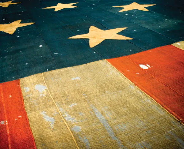 The flag we all know as the “star-spangled banner” is a massive 30 by 42 feet in size and sewn of wool bunting. Each of its 15 stars measures about two feet across and each of its 15 stripes are about two feet wide. Major Armistead commissioned Baltimore flag maker Mary Pickersgill to craft this dramatic emblem for his garrison as he was making preparations for Fort McHenry’s defense. He wanted to be sure the British could see the United States colors from their distant warships. Most people assume that this grand banner flew through “the rockets’ red glare.”