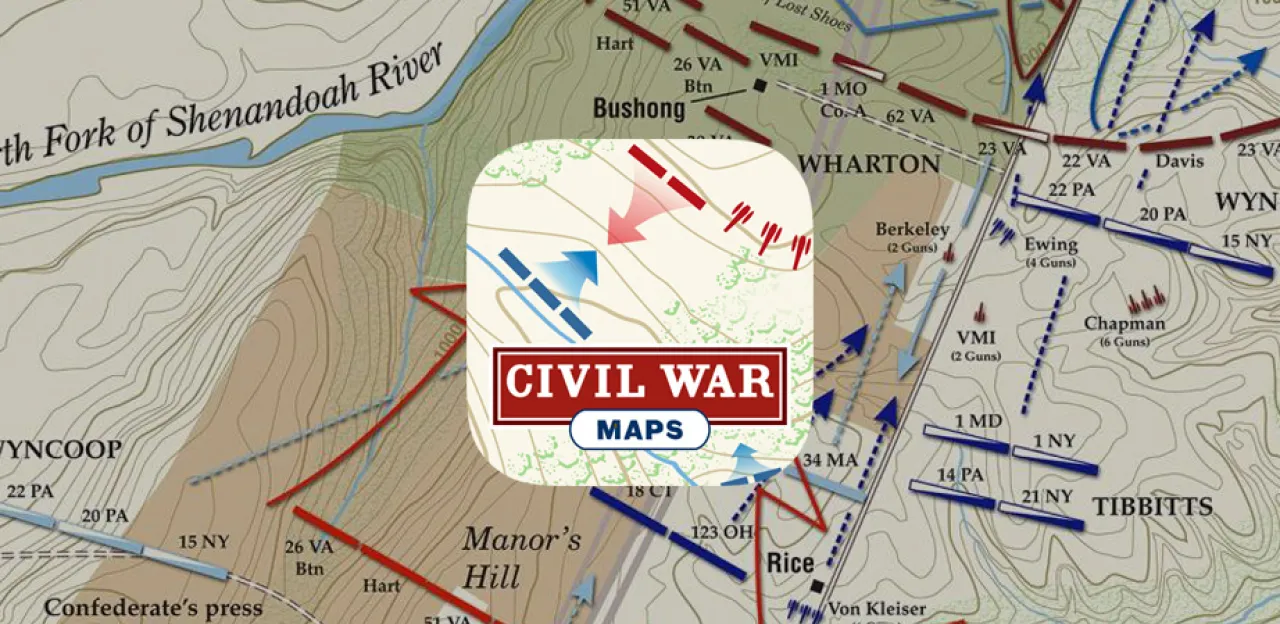 From the opening shots of at Fort Sumter to Lee’s surrender at the Appomattox Court House, Civil War Battle Maps allows you to explore the major events and conflicts of the American Civil War. Drawing upon the American Battlefield Trust’s extensive collection of one-of-a-kind battle maps, you can examine these crucial events in remarkable detail in the comfort of your home or on the battlefield itself.